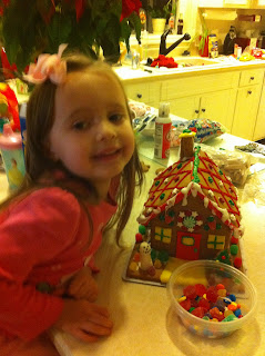 This was Daddy and Emily's 3rd year making their annual gingerbread house. I LOVE that my hubby has a few special things that he likes to do with the kids on his own. This is one of them :) You cant tell by the pics but Emily actually started running a fever of 100.1 during all the fun. She had been out shopping earlier with Daddy for almost 4 hours and he thought she was a little whiney and starting to sound stuffy ...so low and behold we had conformation that she was getting a little bug. But no worries it didnt spoil her fun for this family night! A little motrin and she was good to go...